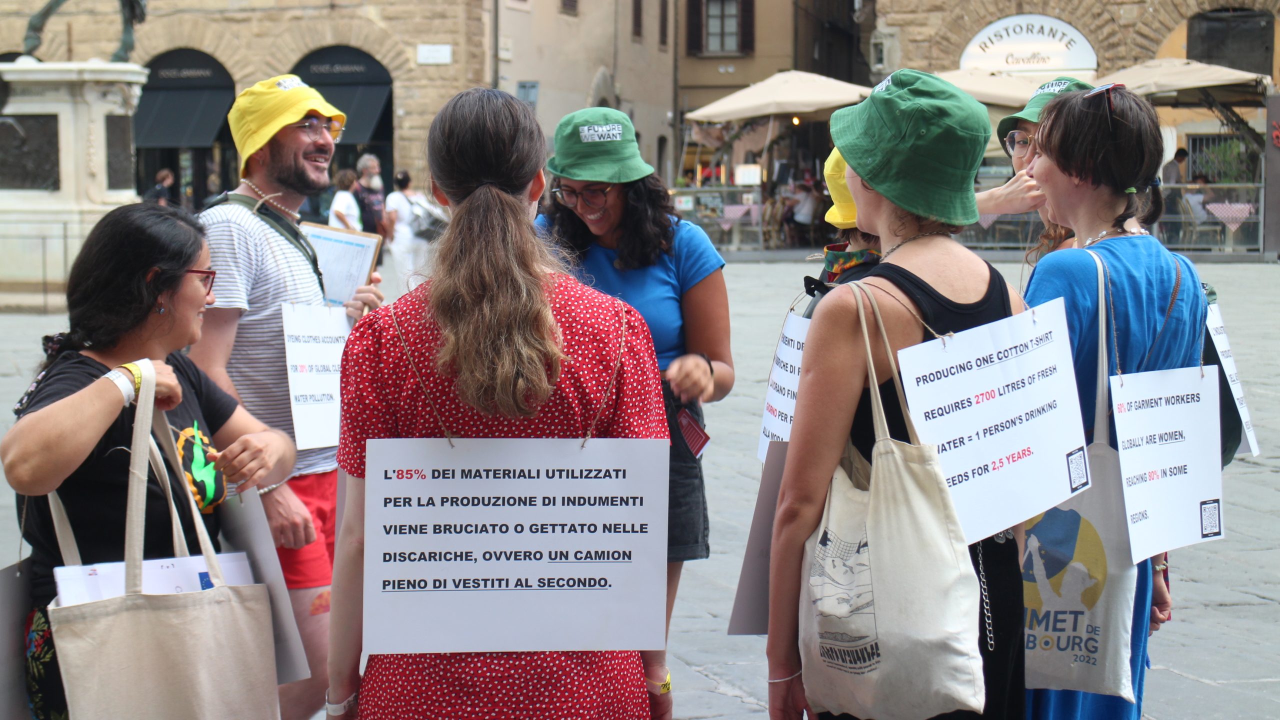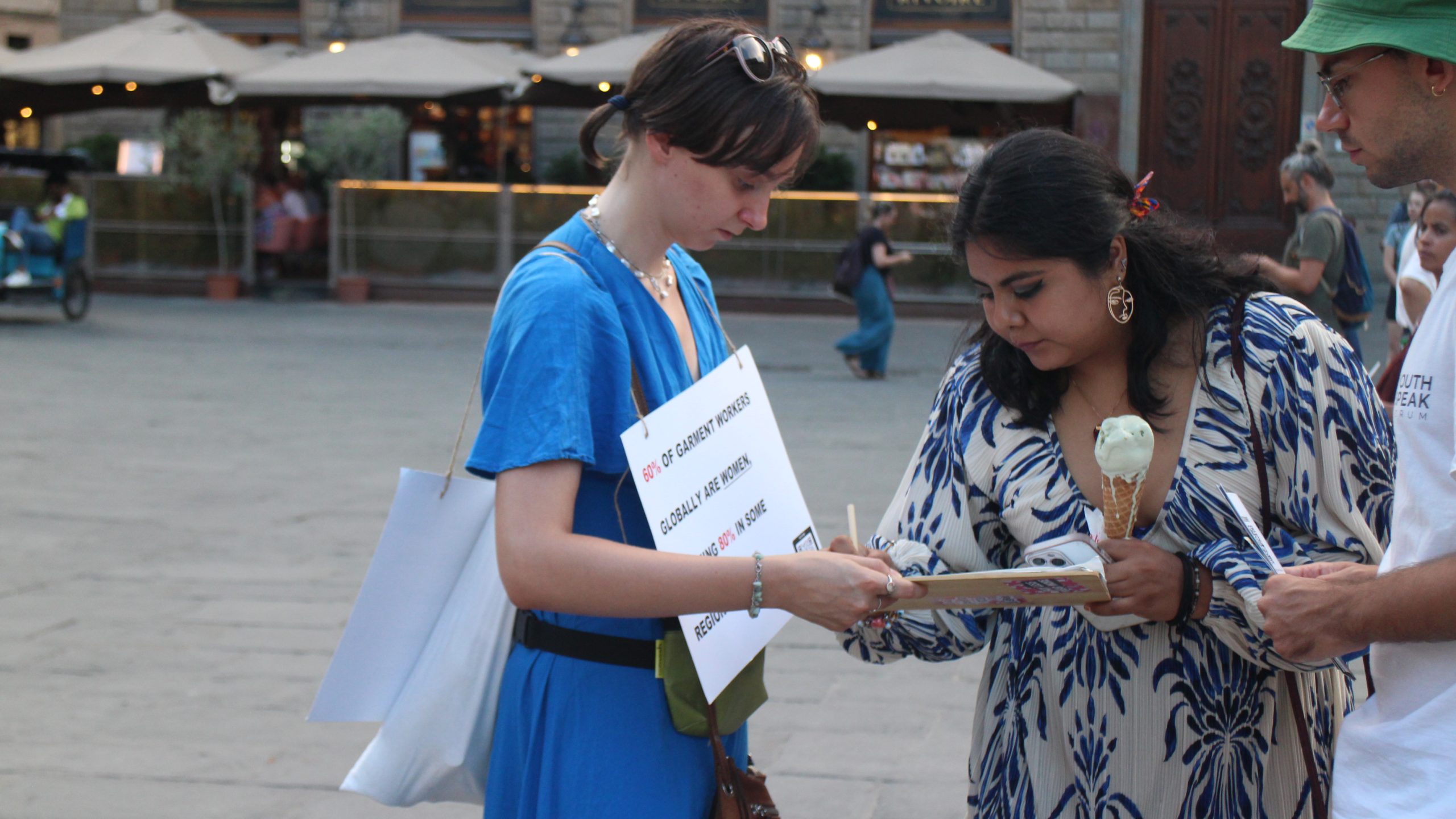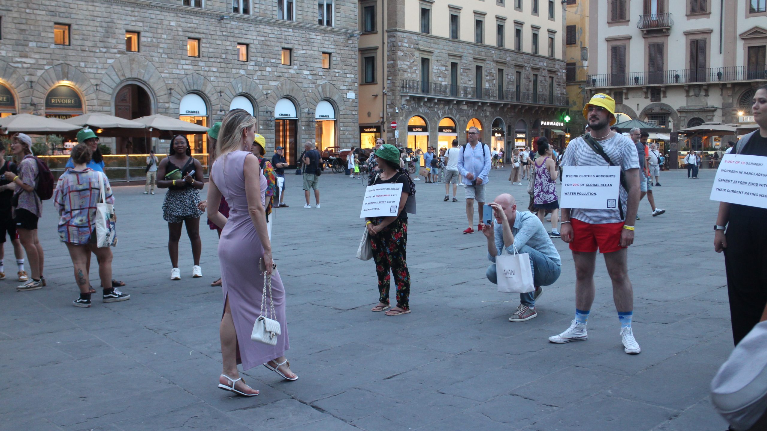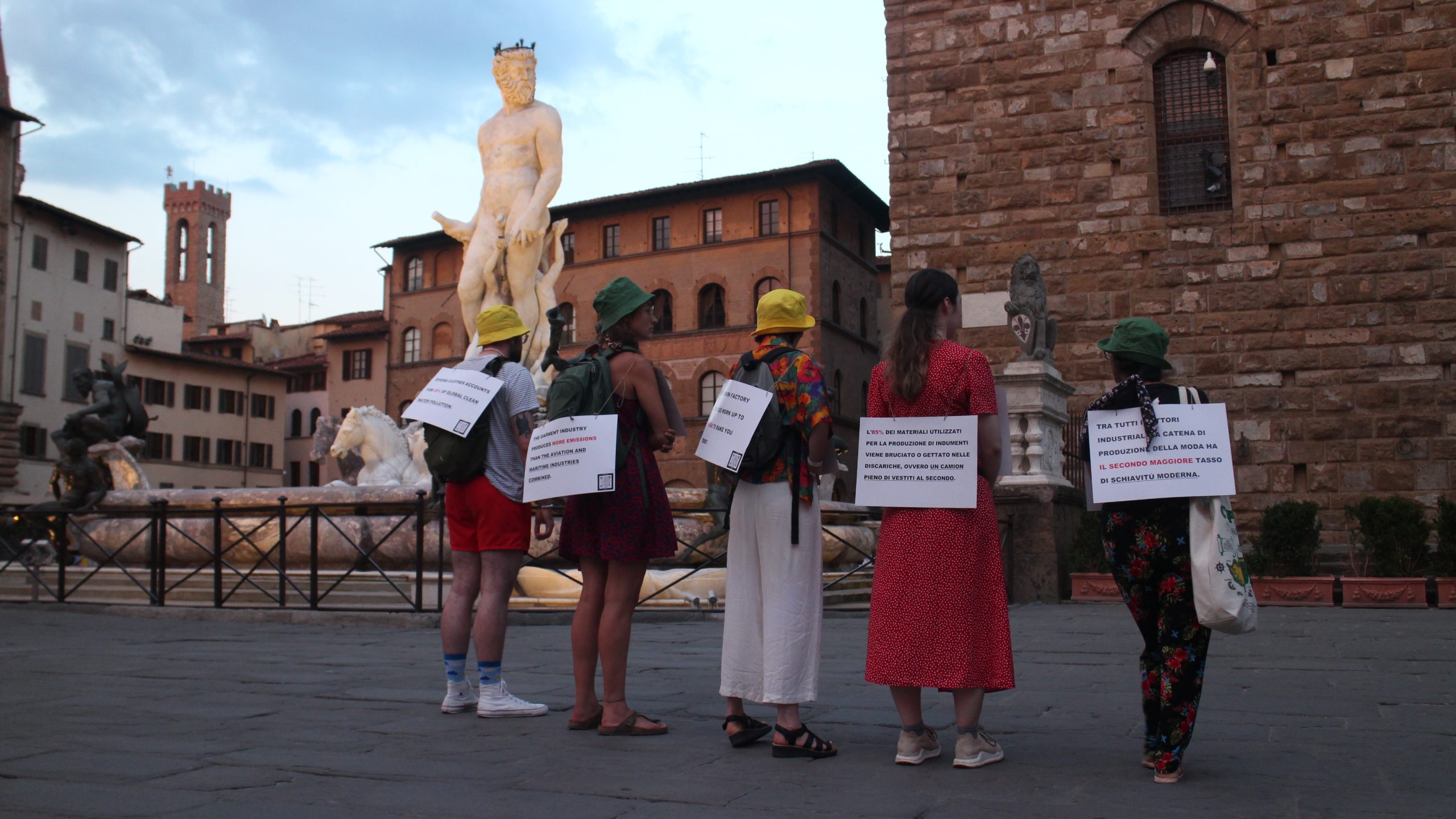 In Florence we met a lot of tourists and some Italians. Some of them were very aware about the fast fashion issues, very supportive. Some others finding the topic uninteresting or refused the sign because they are addicted to fast-fashion. We even met 2 men (surprisingly) who were against our proposal because “we will finish naked without fast fashion”.
