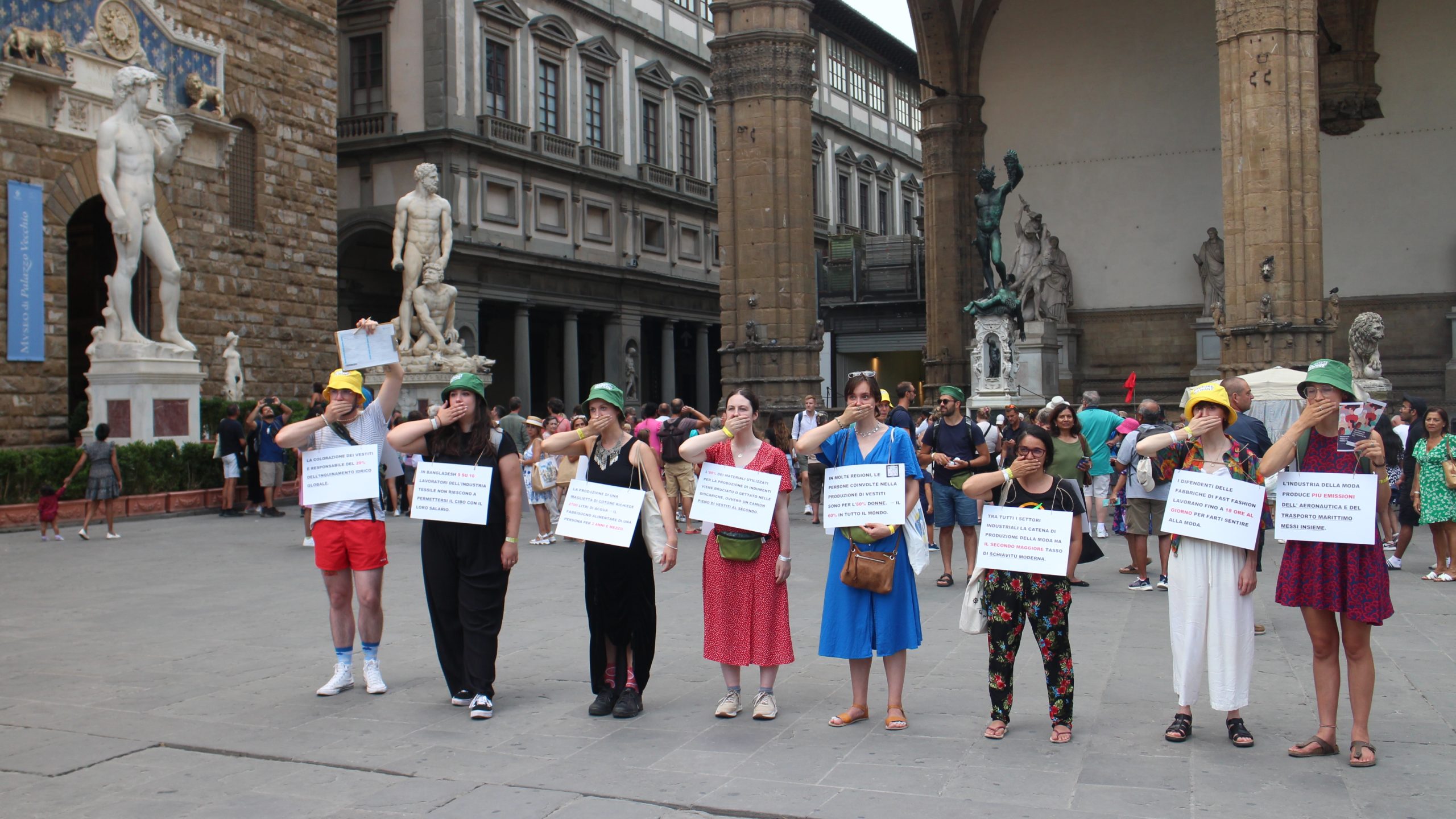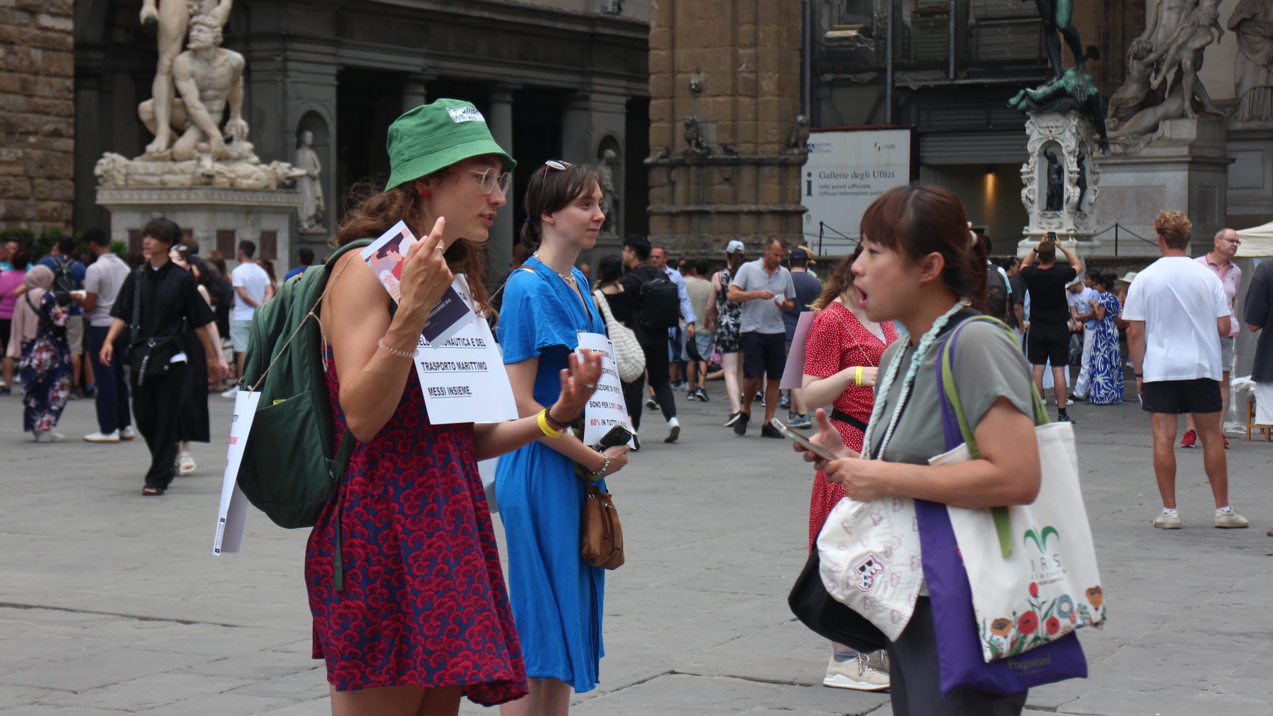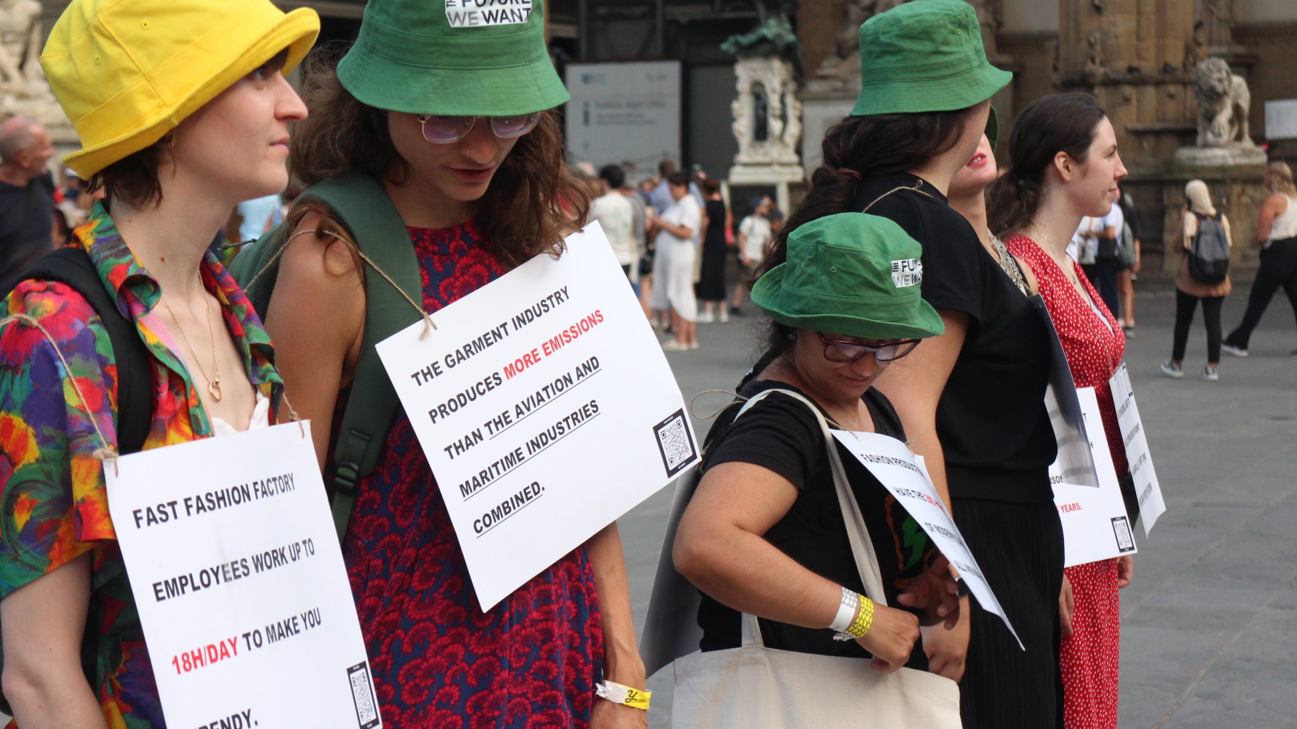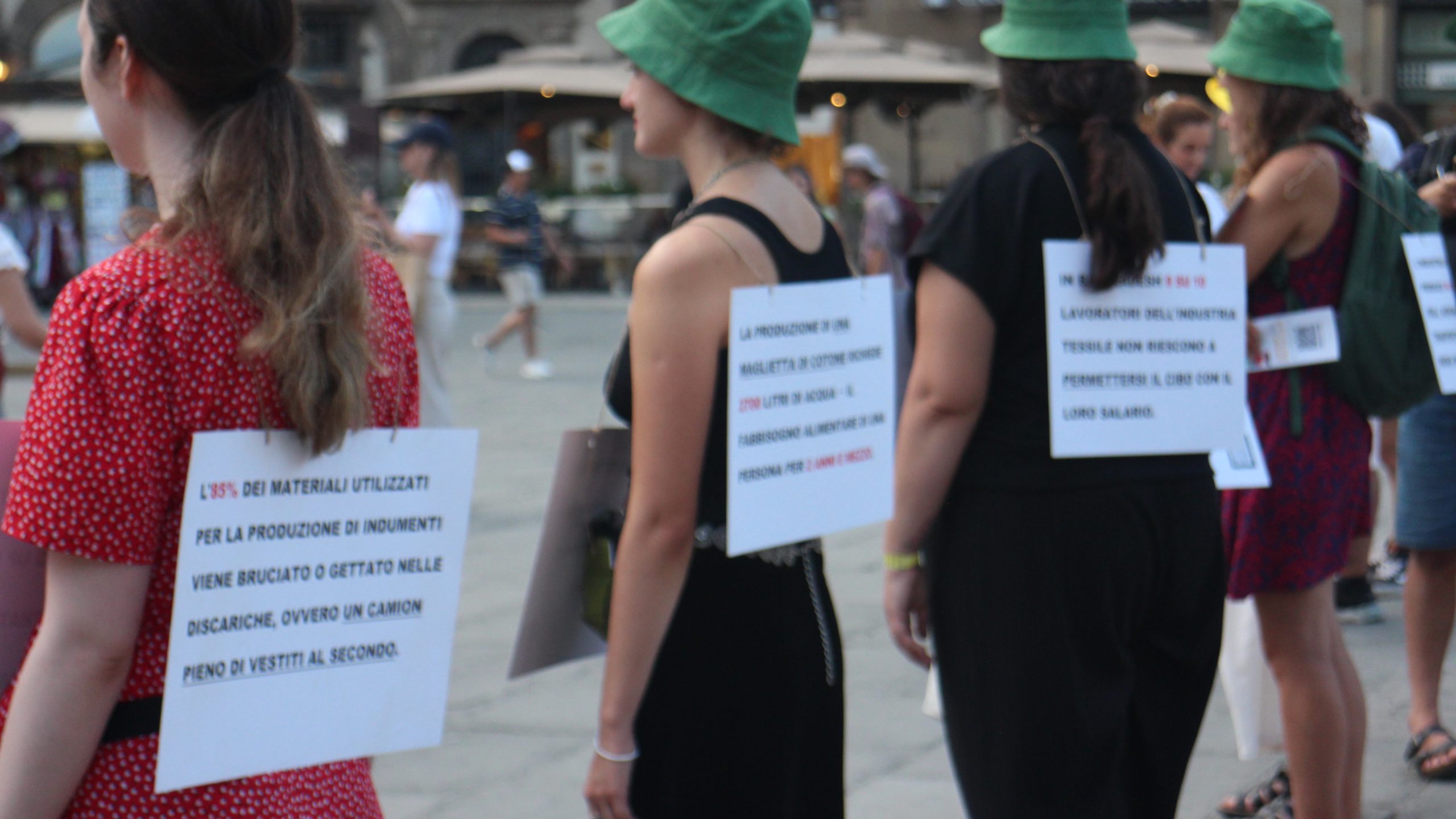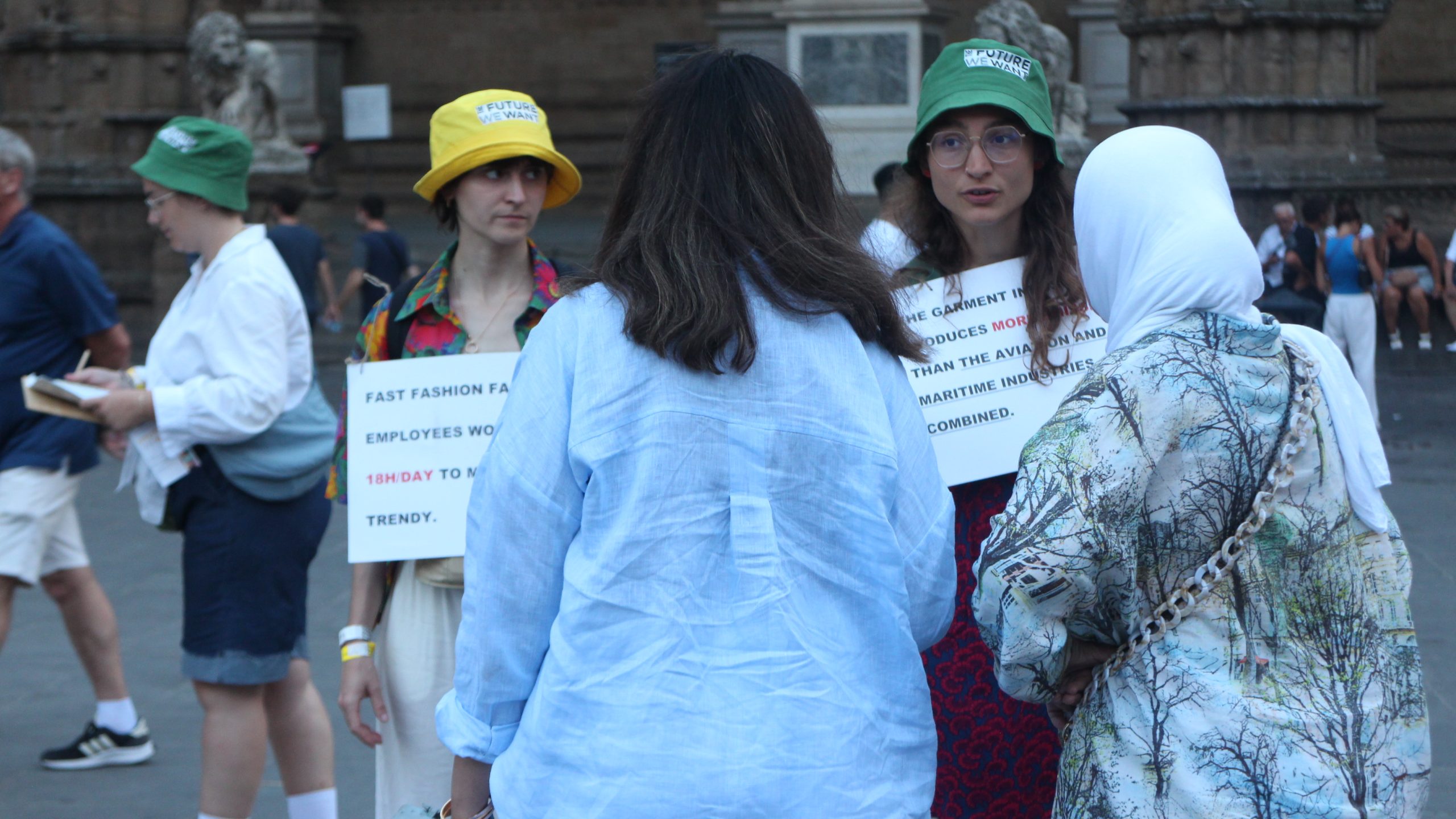 In Florence we met a lot of tourists and some Italians. Some of them were very aware about the fast fashion issues, very supportive. Some others finding the topic uninteresting or refused the sign because they are addicted to fast-fashion. We even met 2 men (surprisingly) who were against our proposal because “we will finish naked without fast fashion”.