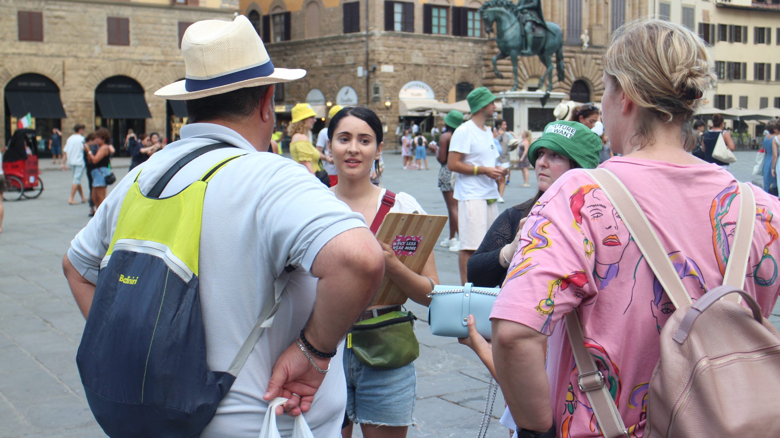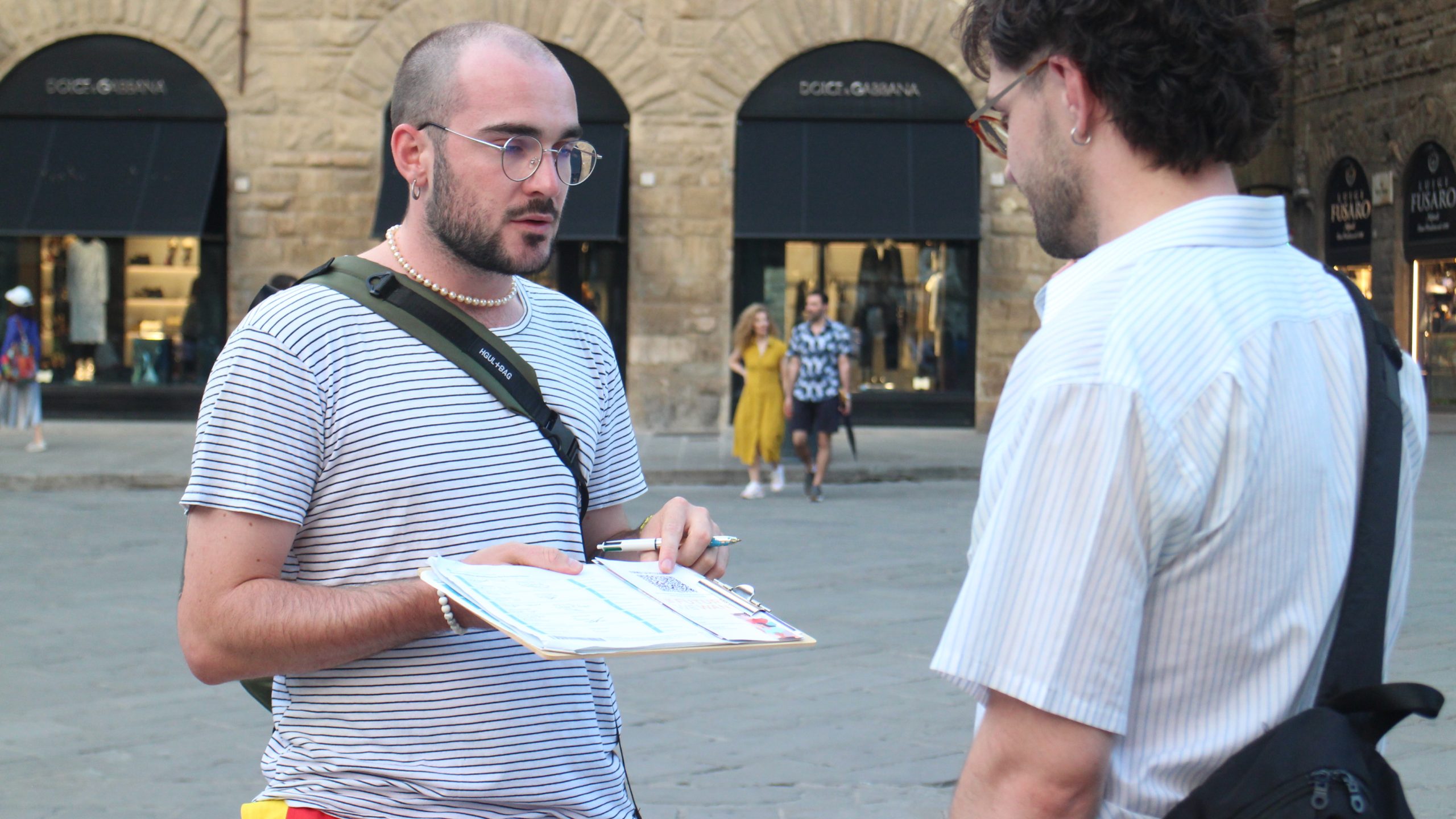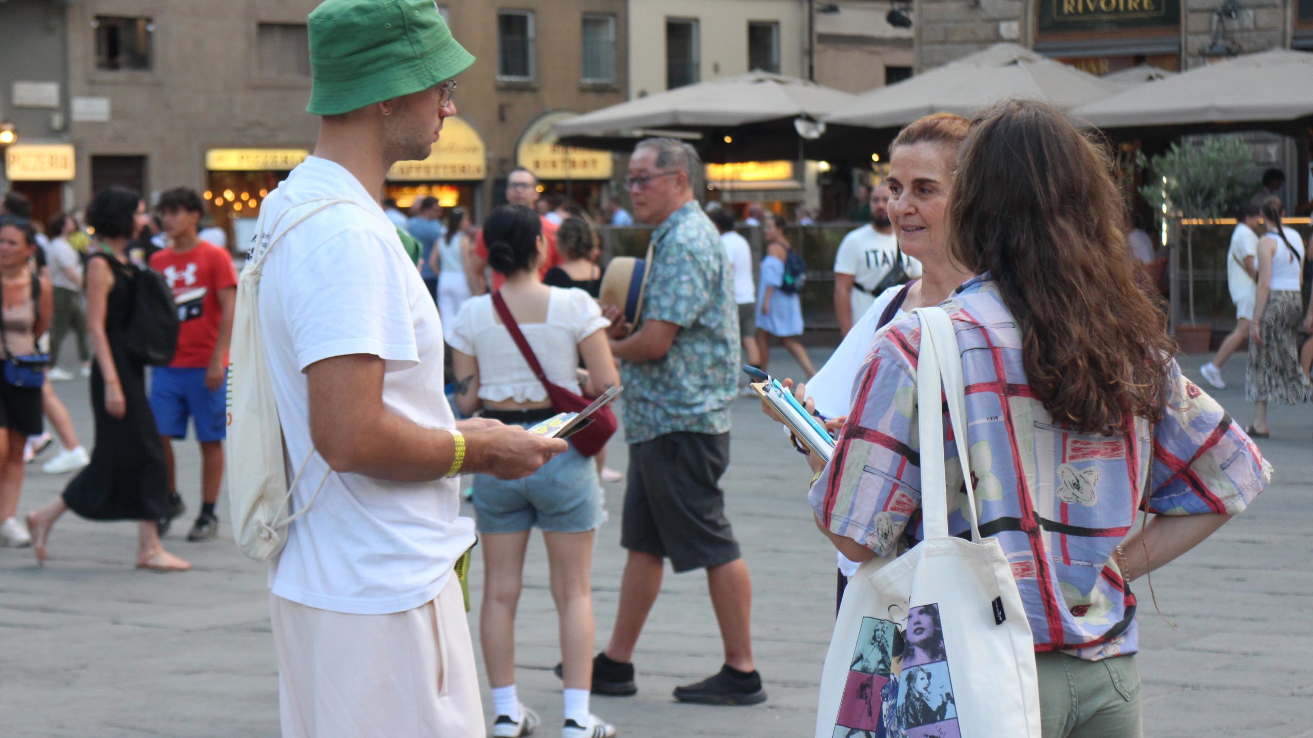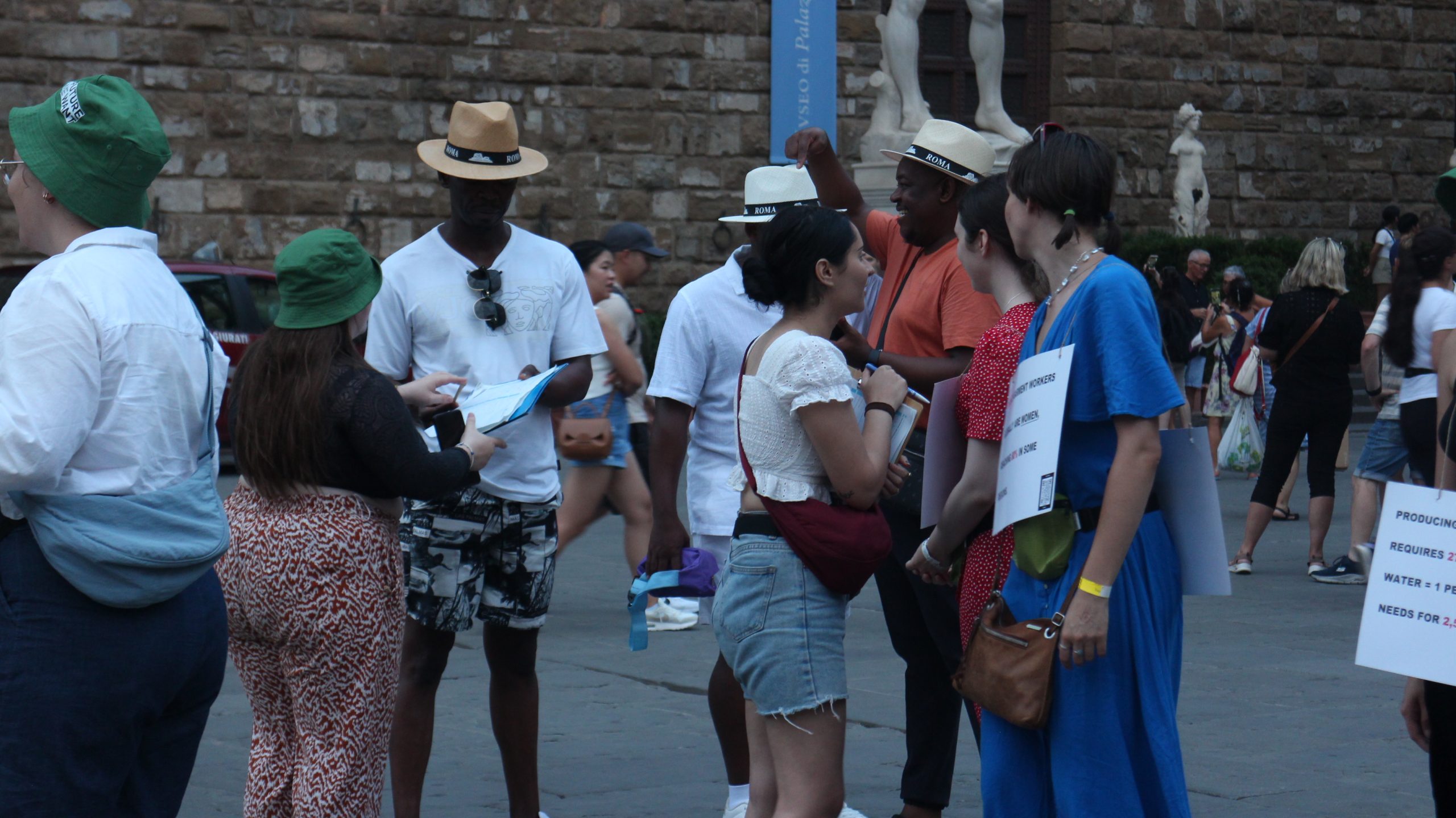 In Florence we met a lot of tourists and some Italians. Some of them were very aware about the fast fashion issues, very supportive. Some others finding the topic uninteresting or refused the sign because they are addicted to fast-fashion. We even met 2 men (surprisingly) who were against our proposal because “we will finish naked without fast fashion”.