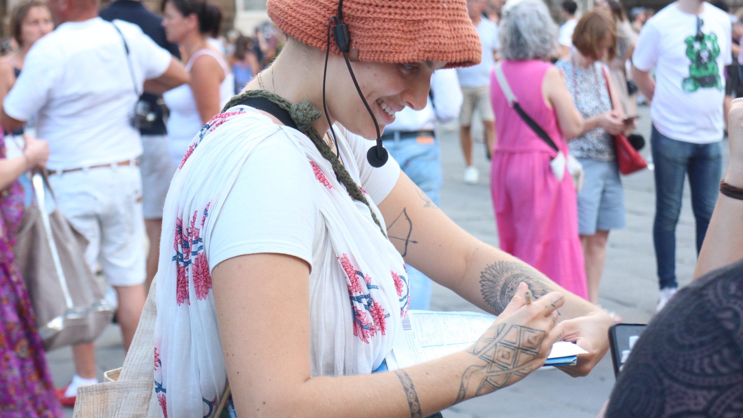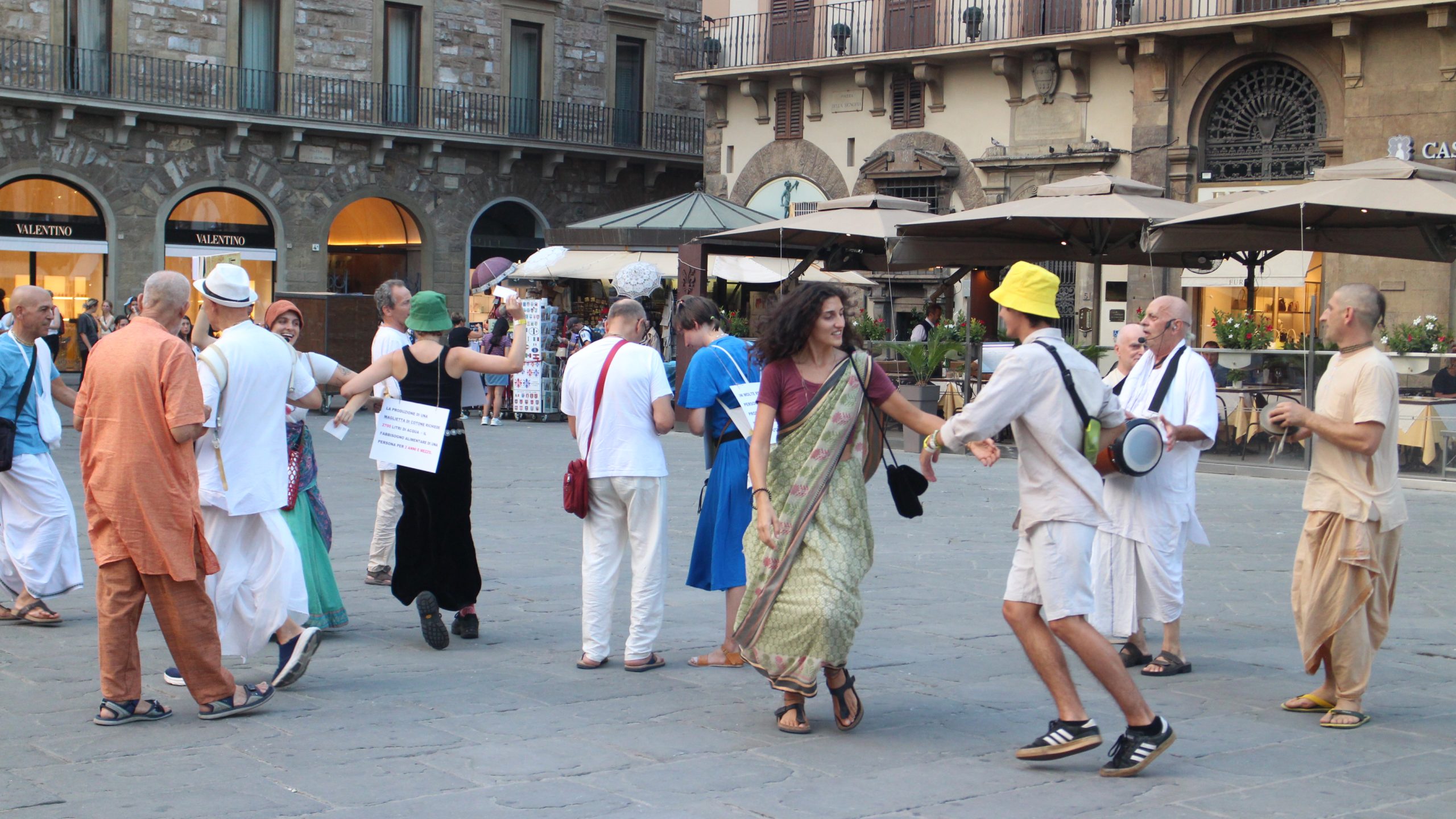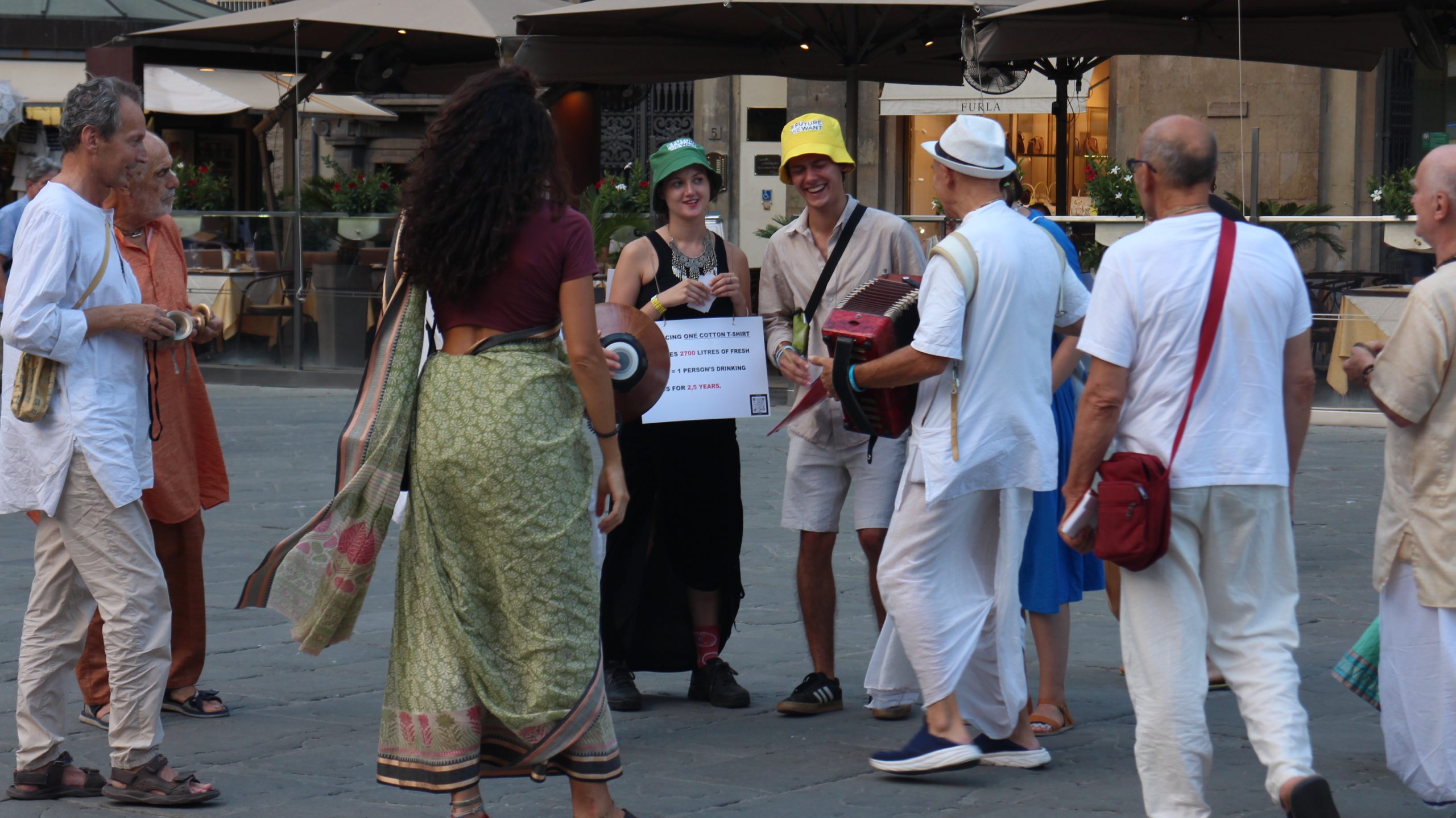 Anyway, a lot of people scanned the QR Code on the Second Hand Shops. We also had the support of street artists like an opera singer who helped us to attract people and a group of Krishna dancers (Luca and Ornella were our best dancers). The place we were was very nice and we gained in confidence and enjoyed more the activities thanks to the resting time before.